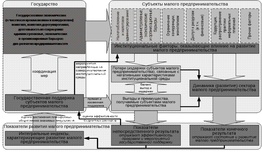 Оценка вклада государственной политики поддержки в развитие малого предпринимательства иллюстрируется схемой Приложения 4.