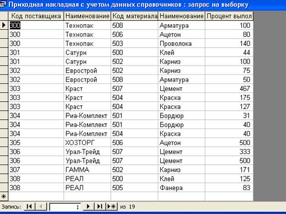 Рис. 12 Запрос на выборку «Приходная накладная с учетом данных справочников».
