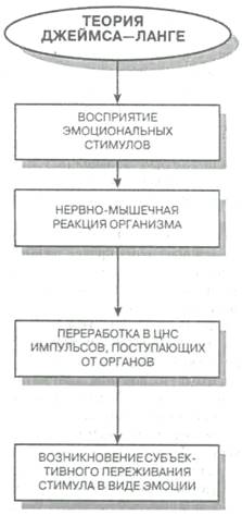 Современная история эмоций начинается с появления в 1884 г. статьи У. Джемса «Что такое эмоция?». Джеме и независимо от него Г. Ланге сформулировали теорию, согласно которой возникновение эмоций обусловлено вызываемыми внешними воздействиями изменениями как в произвольной двигательной сфере, так и в сфере непроизвольных актов, например деятельности сердечно-сосудистой системы. Ощущения, связанные с этими изменениями, и есть эмоциональные переживания. По Джемсу, «мы печальны потому, что плачем; боимся потому, что дрожим; радуемся потому, что смеемся»[6].