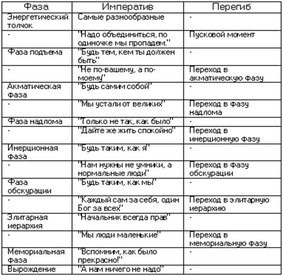 Возникает новый общезначимый идеал новой фазы. В большинстве случаев идеал - это персона победившего "карьериста", ставшего Генеральным директором. В отличие от авторитарного лидера фазы подъема, он никого никуда не ведет. Он просто следит за порядком на предприятии и раздает поощрения и наказания. Исходит при этом он не из принципа полезности и значимости для фирмы тех или иных поступков ее работников, а из тех жестких норм и правил поведения, которые группа управления сумела выработать за время своего существования.