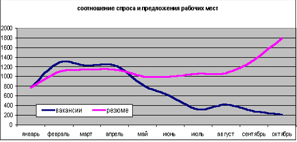 Рис. 1.1. Соотношение спроса и предложения рабочих мест