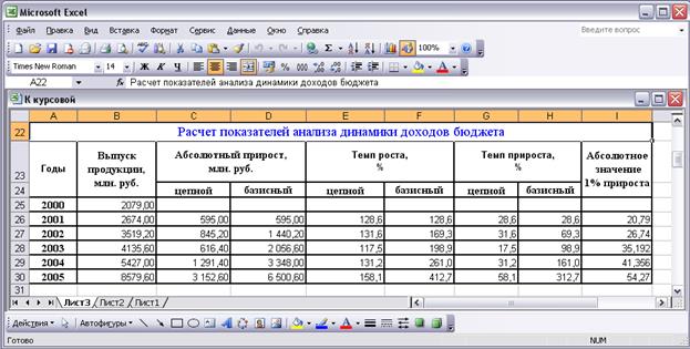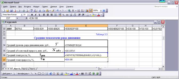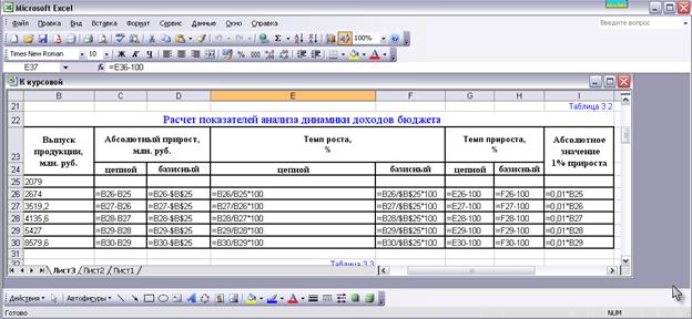В расчетной части курсовой работы выполнено статистическое исследование объема, состава и динамики доходов и расходов тридцати субъектов РФ за полугодие, с использованием персонального компьютера. Для решения задач было использовано приложение MS Office – Excel.