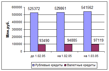 Согласно статистике, опубликованной Банком России на своем официальном сайте, россияне предпочитают кредиты в рублях - например, в марте 2005 года рублевых кредитов россиянам было выдано в 5,57 раза больше, чем кредитов в иностранной валюте. Однако объем кредитов, выданных в иностранной валюте, увеличивается быстрее, чем объем рублевых кредитов.