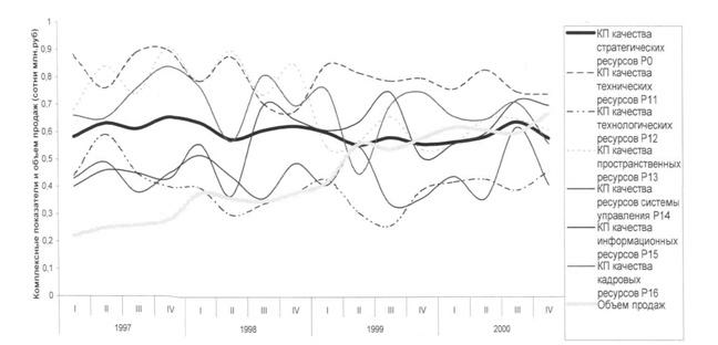 Апробация предложенной методики на ряде предприятий торговой, производственной и других сфер деятельности показала, что из четырех исследованных предприятий на трех имеется сильная связь между динамикой объема продаж и комплексным показателем качества стратегических ресурсов оргструктуры и системы управления. На двух предприятиях имеется сильная связь между объемом продаж и качеством технологических ресурсов и пространственных. На всех предприятиях наблюдается умеренная связь между объемом продаж и качеством технических ресурсов, на трех предприятиях - между показателями качества ресурсов системы управления и качества трудовых ресурсов предприятия. Эти и другие выводы представляются важными, поскольку задачу реализации стратегии управления рациональным распределением ограниченных ресурсов по намеченным целям можно решить, зная, какие ресурсы развивать в первую очередь, чтобы обеспечить высокий уровень конкурентного преимущества.