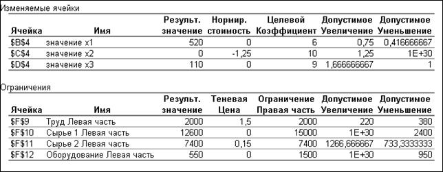 Труд Сырье 1 Сырье 2 Оборудование |