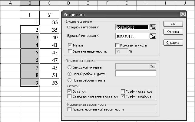 Для построения интервального прогноза рассчитаем доверительный