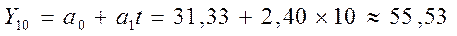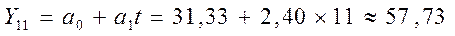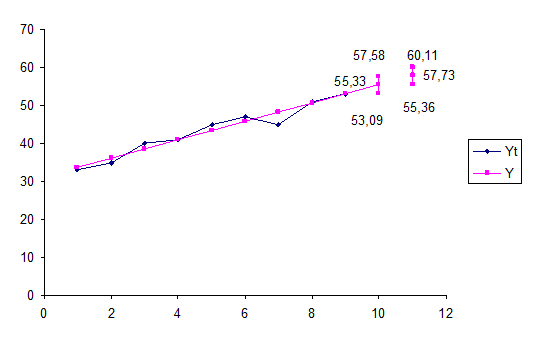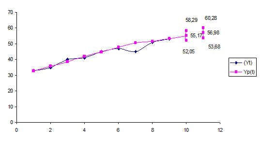 Yp (10) = 53,35+1,81=55,17; Yp (11) = 53,35+1,81 * 2 = 56,98.