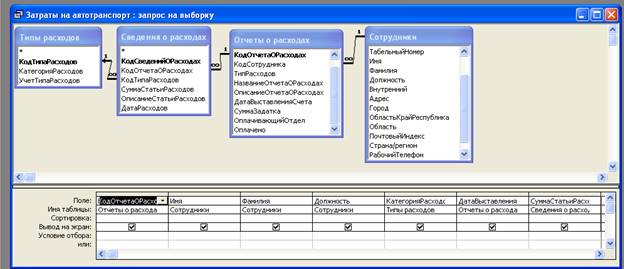 С позиции потребителя – пользователя запрос характеризуется как простой с поэтапным потреблением информации. Полученные по запросу данные могут быть экспортированы в Excel. При реализации в Access этот запрос является запросом на выборку.