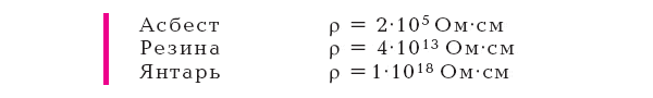 Для сравнения приведем удельные сопротивления некоторых диэлектриков, тоже при комнатной температуре: