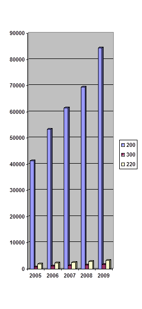 Таким образом, можно сделать вывод о том, что плановые сметные показатели Учреждения за период с 2005 по 2009 гг. выполняются в полном объеме. По расходам группы 200 с 2005 по 2007 гг. наблюдается избыток финансирования, аналогично по расходам группы 300.