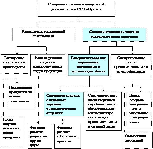 Суть проблемной ситуации заключается в ухудшении конкурентной позиции «Султан» на продуктовом рынке Новосибирска. Следствием данной ситуации стало снижение темпов роста объемов продаж. Для решения проблемы было построено дерево целей и сетевой график реализации намеченных мероприятий. Важнейшим шагом на пути к совершенствованию системы управления экономическим процессом на ООО «Султан» является по мнению экспертов совершенствование основных торгово-технологических операций.