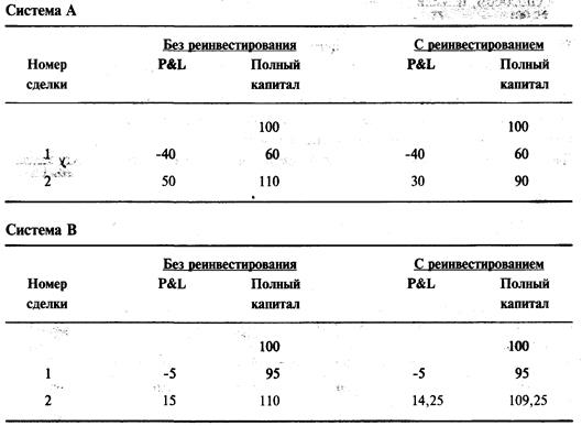 1 Это правило применимо к торговле только в одной рыночной системе. Когда вы начинаете торговать более чем в одной рыночной системе, то вступаете в иную среду. Например, можно включить рыночную систему с отрицательным математическим ожиданием для одного из рынков и в действительности получить более высокое математическое ожидание, чем просто математическое ожидание группы до включения системы с отрицательным ожиданием! Более того, возможно, что математическое ожидание для группы с включением рыночной системы с отрицательным математическим ожиданием будет выше, чем математическое ожидание любой отдельной рыночной системы! В настоящее время мы рассматриваем только одну рыночную систему, и для того, чтобы методы управления деньгами работали, необходимо иметь положительное математическое ожидание.