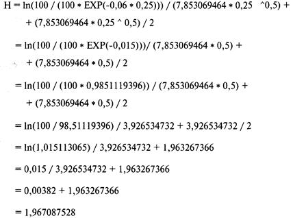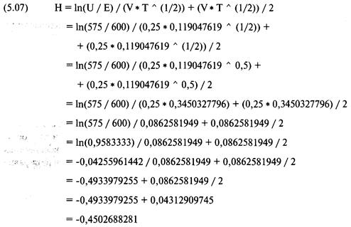 (5.05) Дельта колл-опциона = N(H) Значение Н для (5.05) найдем из уравнения (5.03):
