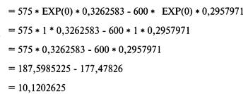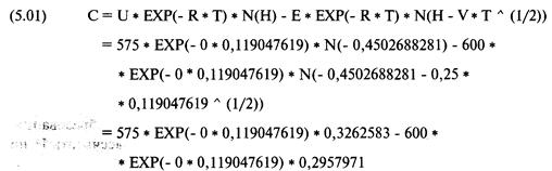 Отметьте, что мы используем модель ценообразования фондовых опционов. Для волатильности будем использовать значение OV. Если безрисковая ставка R = 6% и доля года, оставшаяся до истечения срока, Т = 0,25, то из (5.03) получим: