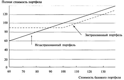 Можно использовать страхование портфеля в качестве метода переразмещения. Сначала следует определить значение минимального ценового уровня, затем для выбранной модели опциона вы должны определить дату истечения, уровень волатильности и другие входные параметры, которые позволят рассчитать дельту. После того как будет найдена дельта, вы можете определить величину активного баланса. Так как дельта для счета (переменная Н в уравнении (8.04а)) равна дельте моделируемого колл-опциона, мы можем заменить Н в уравнении (8.04а) на D: