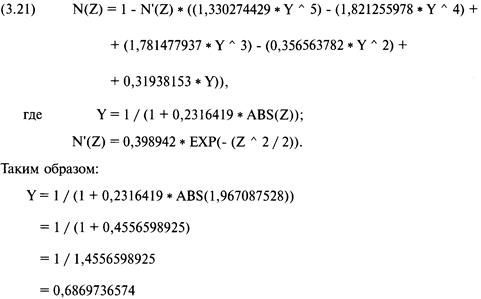 Подставим значения Y и N'(1,967087528) в уравнение (3.21) для получения дельты колл-опциона, в соответствии с уравнением (5.05):