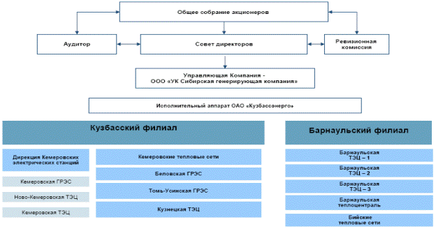 Рисунок 1 - Организационная структура ОАО "Кузбассэнерго"