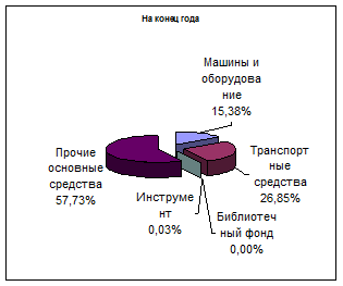 Таким образом, основным фактором, повлиявшим на изменение структуры основных средств в конце года, является показатель «транспортные средства».