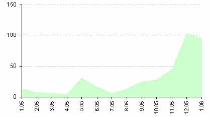 (верхняя линия) в 2004-2005 годах.*