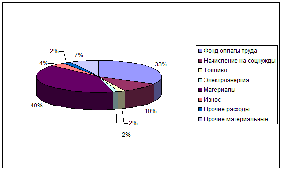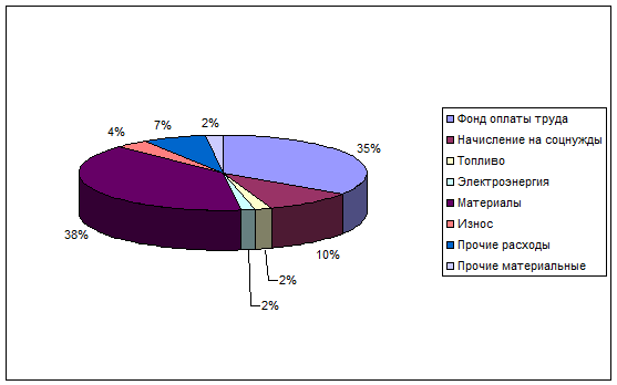Наибольшую долю в структуре расходов депо в 2004 году занимали затраты на материалы – 33% и фонд оплаты труда – 35 %. Это объясняется тем фактом, что осуществляемые организацией услуги очень материалоемкие и требуют значительного количества затрачиваемых материалов и затрат труда. Самую наименьшую долю занимают прочие расходы (2 %).