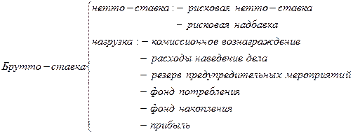 Полная тарифная ставка называется брутто-ставкой. Она состоит из нетто-ставки и нагрузки. Задача нетто-ставки – обеспечить выплаты страховых сумм, т.е. выполнение финансовых обязательств страховщика по договорам страхования. Нагрузка предназначена компенсировать расходы на ведение страховых операций.