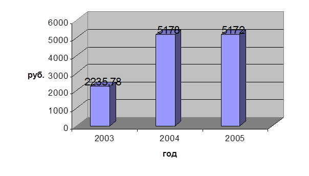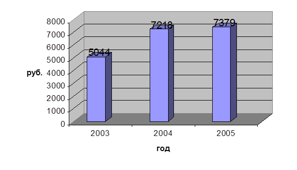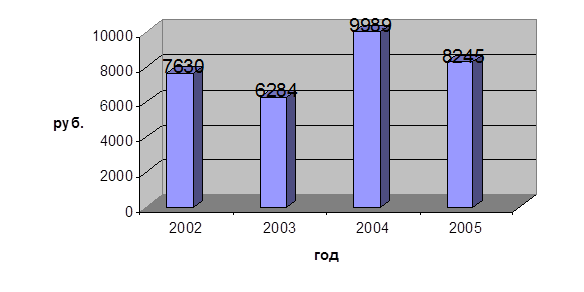 Согласно, рис. 2.2 видно, что объем выпуска готовой продукции увеличивается не только в натуральном выражении, но и в денежном выражении. Резкое изменение наблюдалось с 2002 г. по 2003 г.