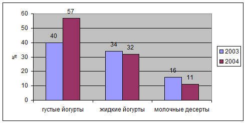 Увеличение доли покупателей и частоты потребления продукта повлекло изменения в приоритетах покупателей относительно производителей, представленных на рынке. Лидер прошлого года – компания Данон сдала позиции на сегменте густых йогуртов. По приверженности покупателей в этой группе продуктов на первое место вышла марка «Чудо – йогурт» компании «Вимм – Билль- Данн»[2, с.99].