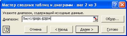 На втором шаге зададим Диапазон, содержащий исходные данные, т.е. A6:I84: