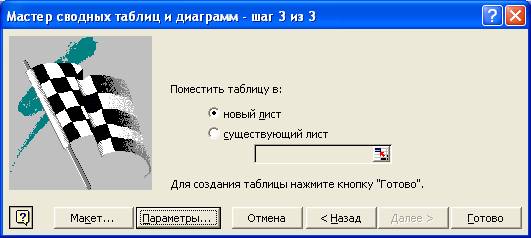 Зададим размещение создаваемой сводной таблицы на новом листе.