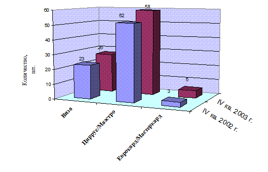 Такая двухуровневая система уже формируется в России по карточкам «Виза». Крупные коммерческие банки, вступившие раньше других в эту платежную систему, наращивают количество выпущенных карточек не только за счет своих собственных клиентов, но и благодаря привлечению к сотрудничеству других банков, не имеющих возможности или намерения самостоятельно эмитировать международные карточки.