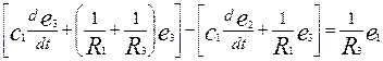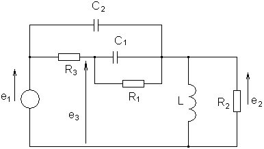 Пример: Дли цепи изображенной на рисунке запишем уравнение, связывающее напряжение на выходе е2 с напряжением источника e1. Суммируя токи, выходящие соответственно из узлов 3 и 2, получим
