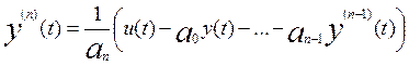 Непрерывную систему часто описывают дифференциальным уравнением относительно ее выхода y(t) и входа r(t). В общем виде уравнение представляется так: