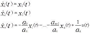 В связи с тем, что все выражения справедливы как для систем с постоянными, так и с переменными параметрами, коэффициенты аi могут быть в общем случае функциями времени t. Если правая часть последнего уравнение равна тождественно нулю, т. е.