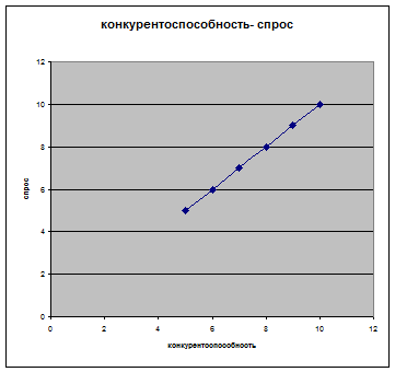 Рис.7. Соотношение конкурентоспособность и спрос С ростом конкурентоспособности спрос на товары растет