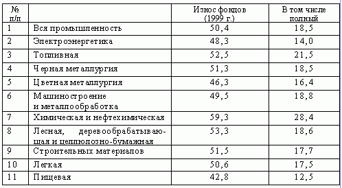 Таблица 1 Степень износа основных фондов в отдельных отраслях экономики