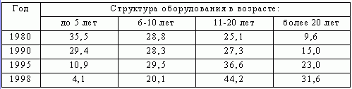 Таблица 2 Возрастная структура производственного оборудования в промышленности