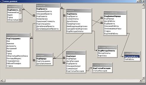 1.1. Связи между таблицами БД «Борей» и их содержимое