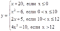 =ЕСЛИ(C25<=0;C25+20;ЕСЛИ(C25<=10;C25*C25-6;