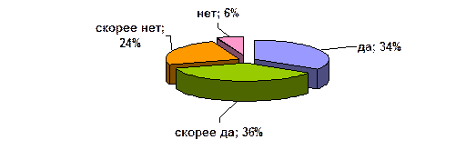 По полученным ответам 70% работников компании нравится (34%) или скорее нравится ( 36%) работать в компании; тех. кому категорически не нравится работать в ООО только 6%, но есть еще 24%, которые чем-то недовольны и им скорее не нравится работать в фирме, но при этом они не выбрали категоричную форму отрицания. Эта категория персонала, скорее пока колеблется.