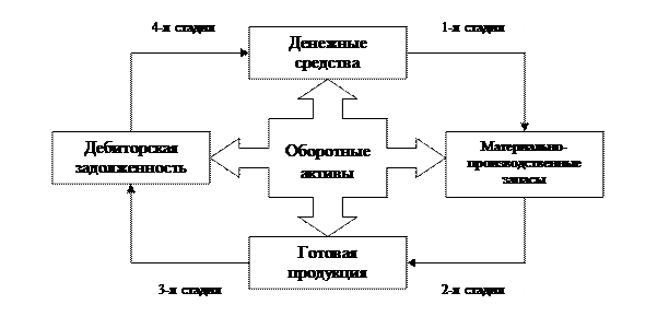 Движение оборотных активов предприятия проходит четыре основных стадии, последовательно меняя свои формы.