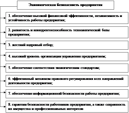 1.2. Специфика обеспечения экономической безопасности на предприятии............... 9