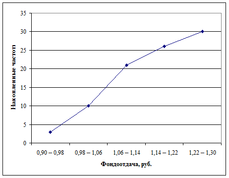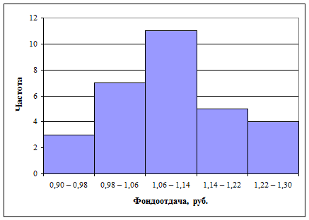 Уровень фондоотдачи в рассматриваемой совокупности в среднем составляет 1,10 руб. В большинстве предприятий уровень фондоотдачи составляет от 1,01 до 1,19 руб. Рассматриваемая совокупность является однородной.
