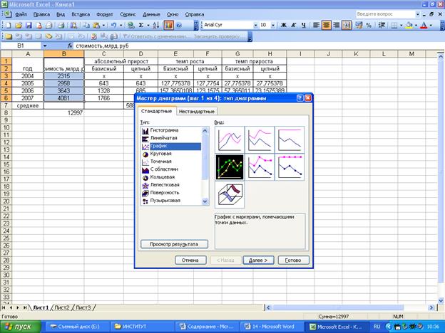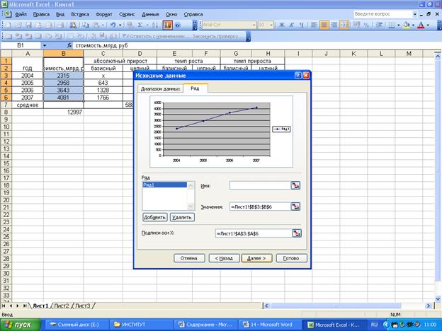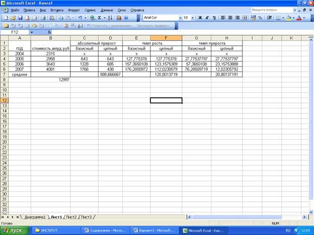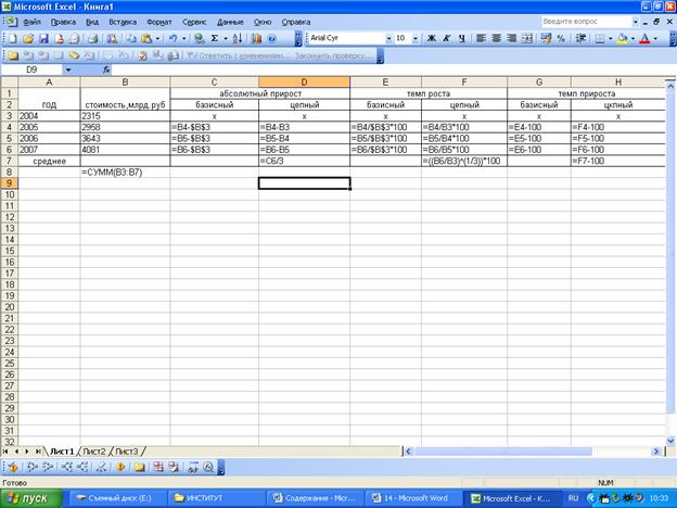 Сложной, трудоемкой и ответственной является заключительная, аналитическая стадия исследования. На этой стадии рассчитываются показатели динамики стоимости основных фондов страны с использованием программных средств.