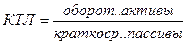 где КТЛ (д) – «достаточное» значение коэффициента; КЗ – краткосрочная задолженность предприятия; МОА – материальные оборотные активы; ДС – денежные средства.