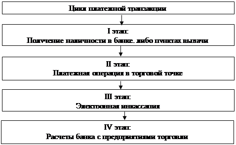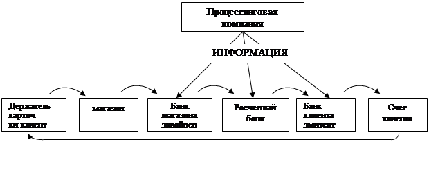Таким образом, в организации большой платежной системы, основанной на банковских карточках, необходимо помнить, что в любой операции платежа, осуществленной с помощью карточки приводится в действие следующая цепочка (рис 1.2).