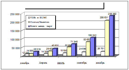 Рис. 2.5 Рост числа международных карт в 2003 году