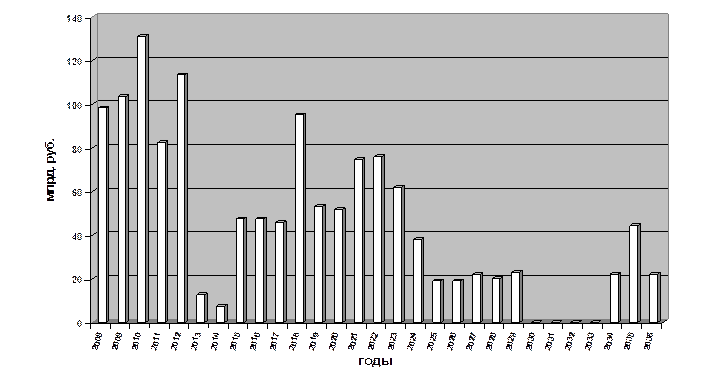 Наибольший объем расходов на погашение приходится на 2008-2012 годы и на 2018, 2021, 2022 годы, при этом наибольшая сумма к погашению (2010 год) составляет 131,124 млрд. рублей, и имеется тенденция к равномерности. С 2030 по 2033 года по заимствованиям, осуществленным до 2008 года, платежей в погашение долга не предполагается, что может быть учтено при заимствованиях последующих лет.