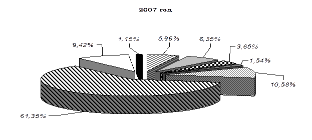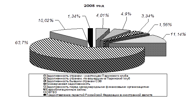 Рис. 3 . Структура внешнего государственного долга РФ,% (на начало 2006, 2007 и 2008 гг.)
