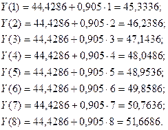 5) Отразить на графике фактические, расчетные и прогнозные данные.