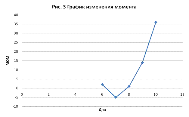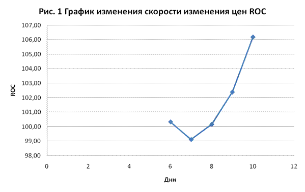 График ROC (Рис. 4) пересекает уровень 100% в районе 6-8 дня сверху вниз, что является сигналом к продаже.